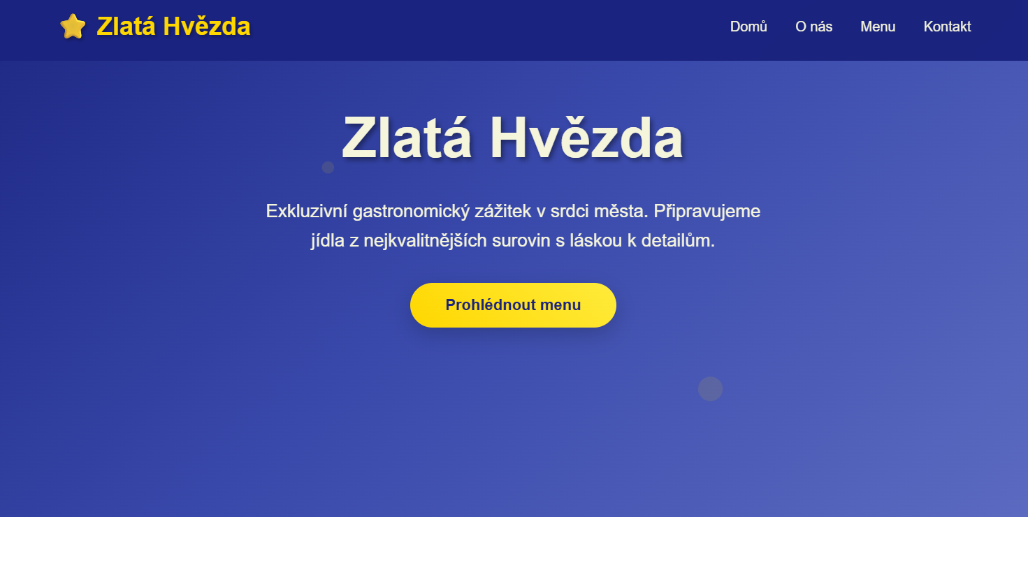 Jednoduché webové stránky pro restauraci Zlatá Hvězda